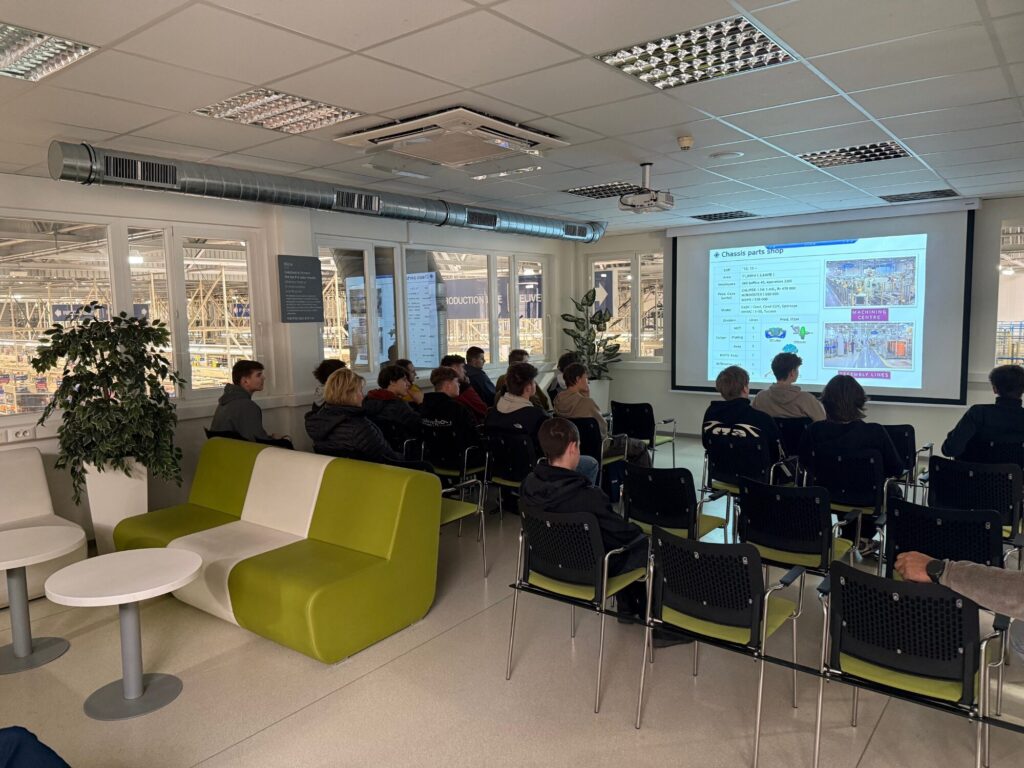 Na začiatku sme boli poučení o bezpečnosti v závode. Videli sme montážnu linku prístrojových dosiek, vstrekovaciu a lisovaciu linku na výrobu blatníkov, sklad náhradných dielov a prácu na vysokozdvižnom vozíku, výrobu posilňovača bŕzd, linku na osádzanie Airbagov a rôzne robotické pracoviská a manipulátory ako súčasti výrobných liniek.